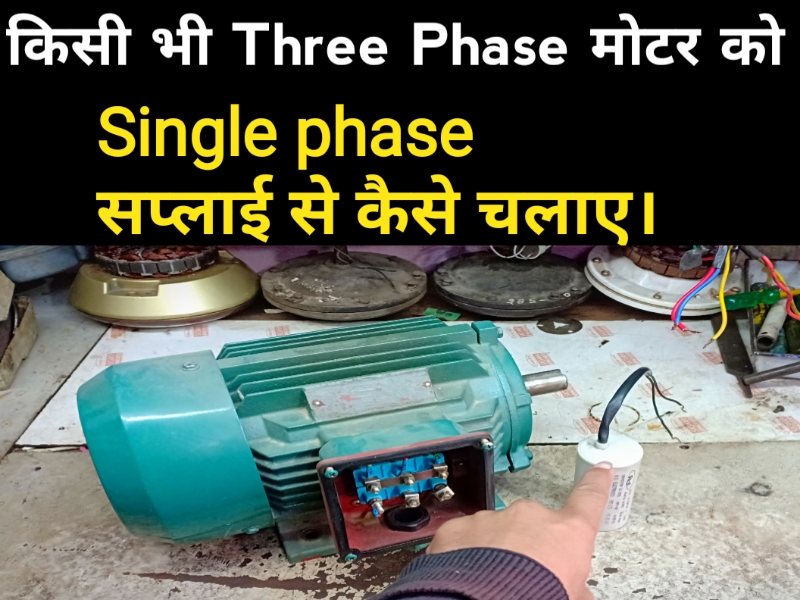 आप एक स्टार्टिंग कपैसिटर की हेल्प से एक थ्री फेज मोटर को सिंगल फेज सप्लाई पर चला सकते है.